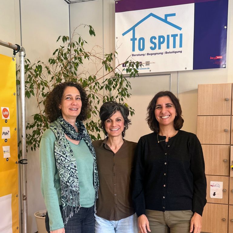 „Wir sind doch ein Europa!“ – so eine Besucherin bei To Spiti – Begegnung, Beratung, Beteiligung. Anlässlich der bevorstehenden Europawahl am 09. Juni 2024 war Pass[t] Genau zu Besuch bei der Einrichtung unter dem Dach des Diakoniewerks Simeon. To Spiti bietet Sozialberatung auf Deutsch und Griechisch für neu Zugewanderte und schon länger in Berlin lebende Menschen mit Migrationshintergrund an. Im Haus der Begegnung in Berlin-Neukölln wurde der Wahl-O-Mat der Landeszentrale für Politische Bildung in analoger Form mit großen Schautafeln aufgebaut. Besuchende können hier die Fragen vor Ort beantworten und mit den Mitarbeitenden der Beratungsstelle darüber ins Gespräch kommen. Wir wollten von den Mitarbeitenden von To Spiti wissen, welche Rolle Europa und die anstehende Wahl für ihre Besuchenden spielt. Dafür haben wir mit Maria Aplada und Sofia Margariti gesprochen.
